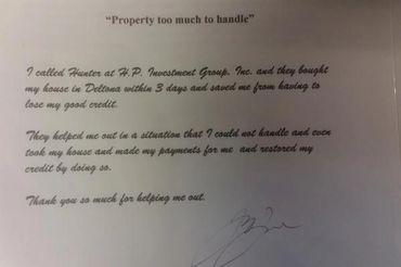 Each deal has also been a learning experience for us; it is so rewarding to work with a seller on debt negotiation, especially one with a house in foreclosure, to find a buyer, and to close the deal.